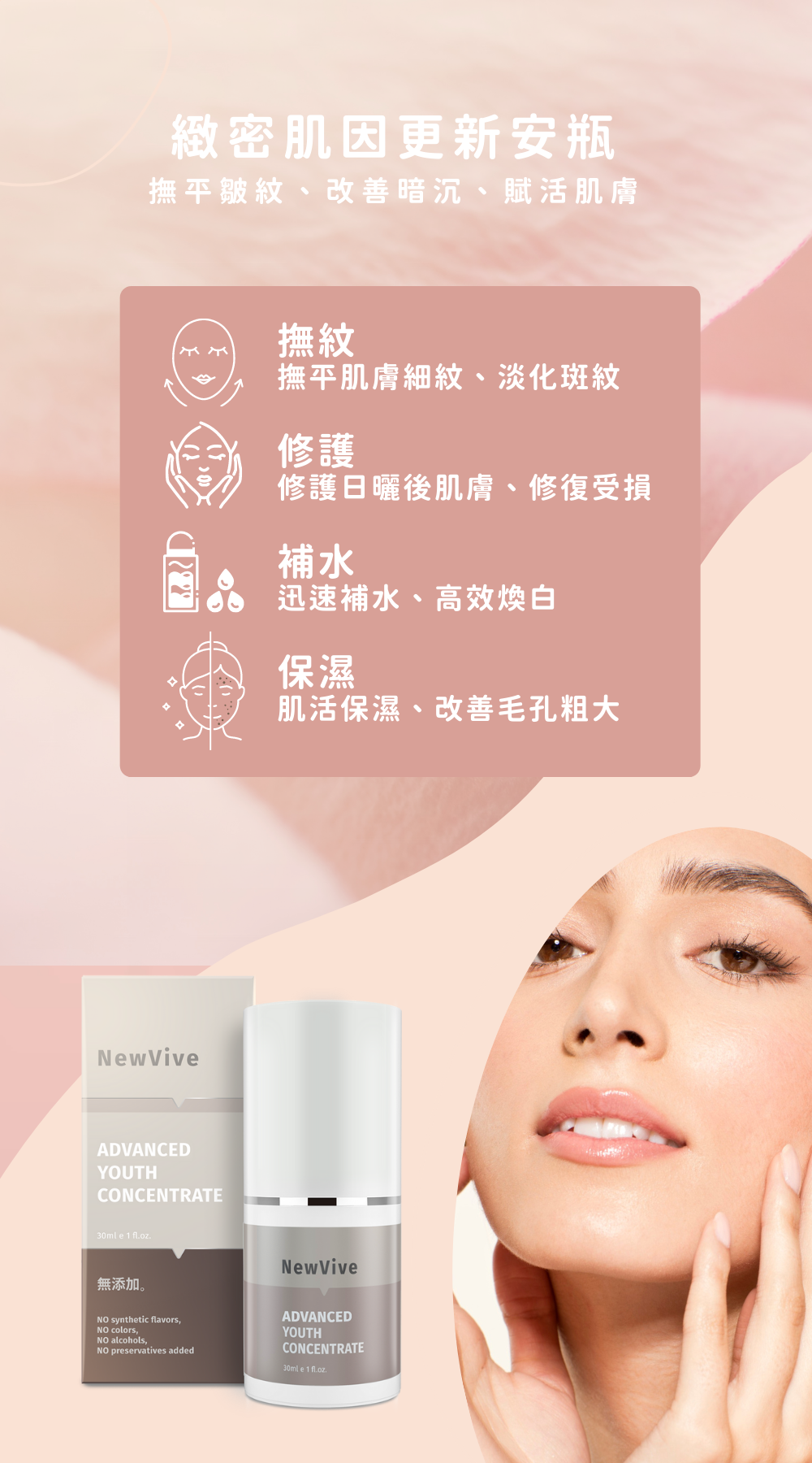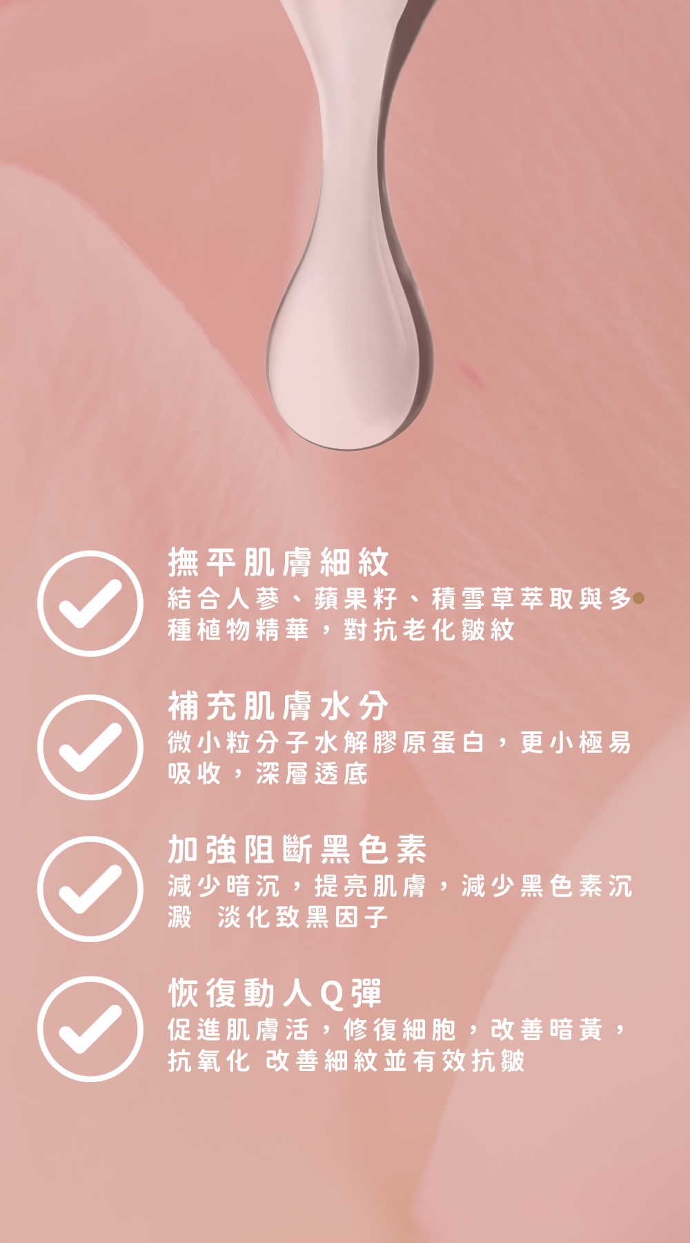 - 對抗肌膚老化重返青春 撫平皺紋、改善暗沉、滋養賦活肌膚.