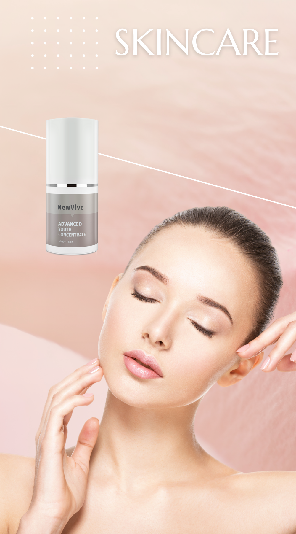 - 將適量緻密肌因更新安瓶液擦拭在臉上、頸部以及鎖骨部位輕輕推開。